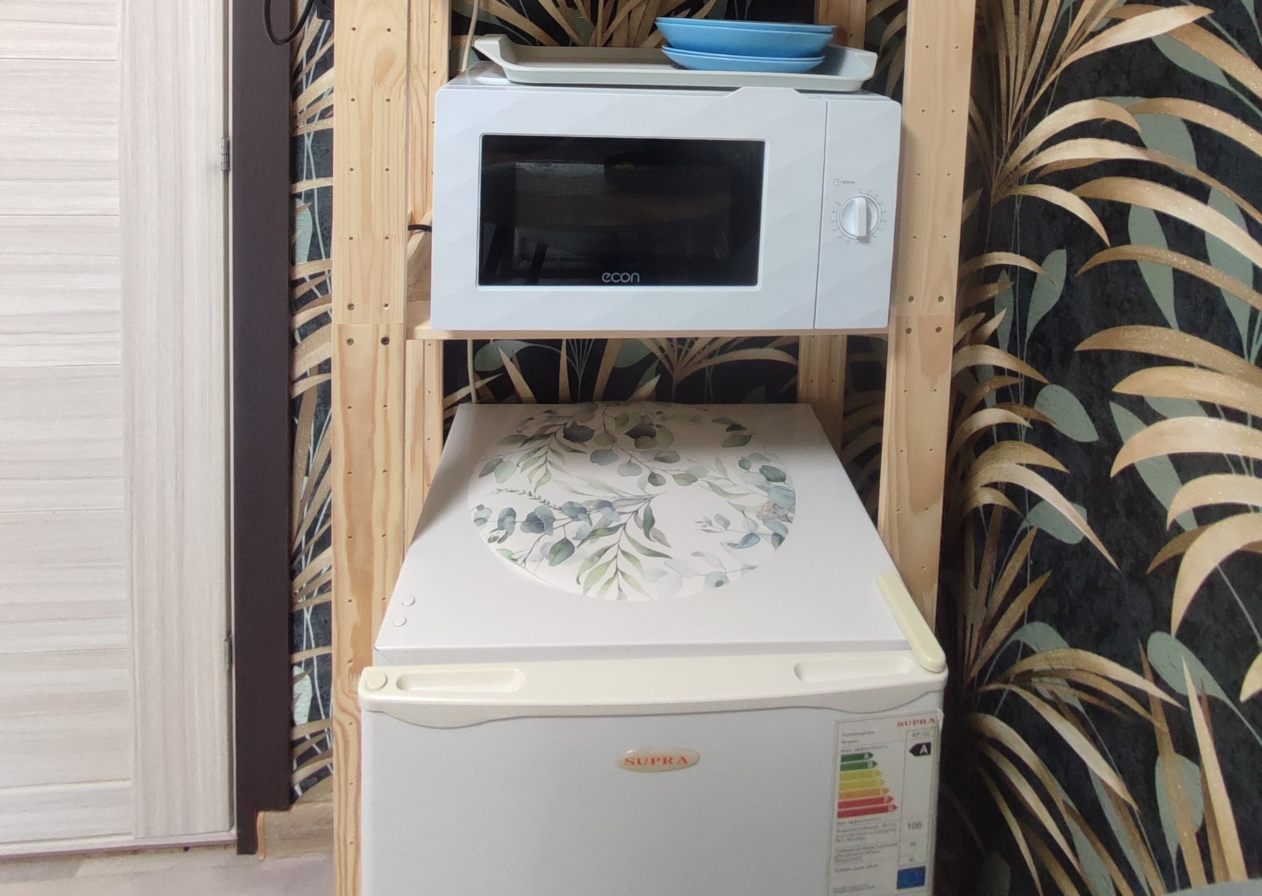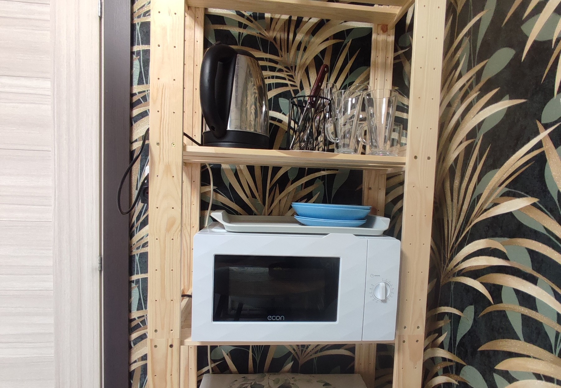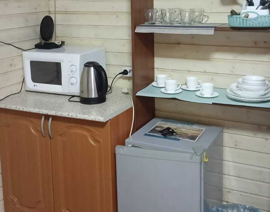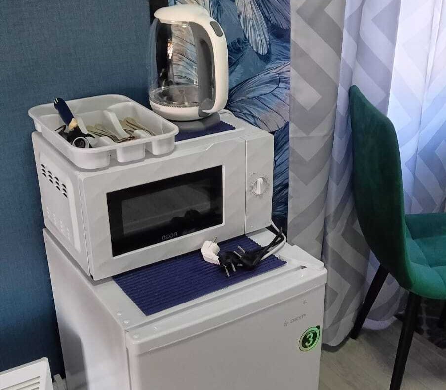 - Оборудование: микроволновая печь, мини-холодильник, набор посуды, телевизор, электрочайник